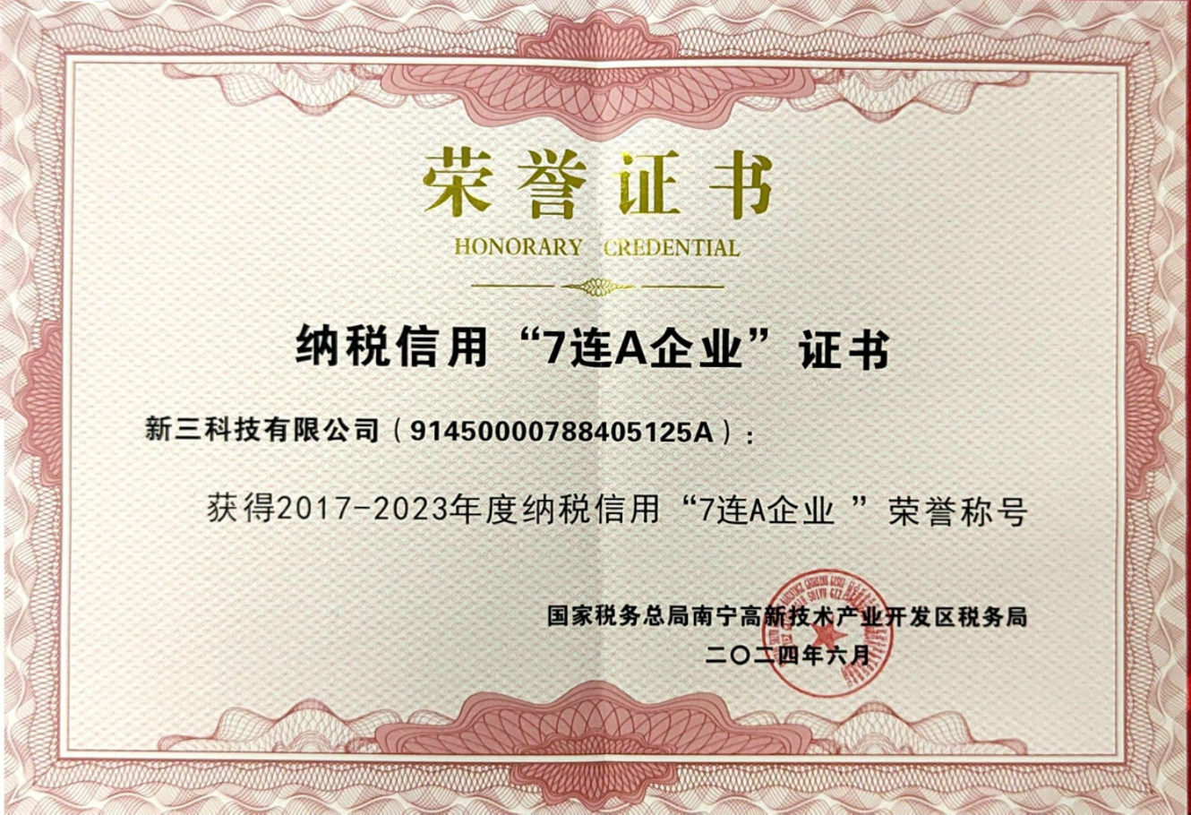 荣获纳税信用“7连A”企业