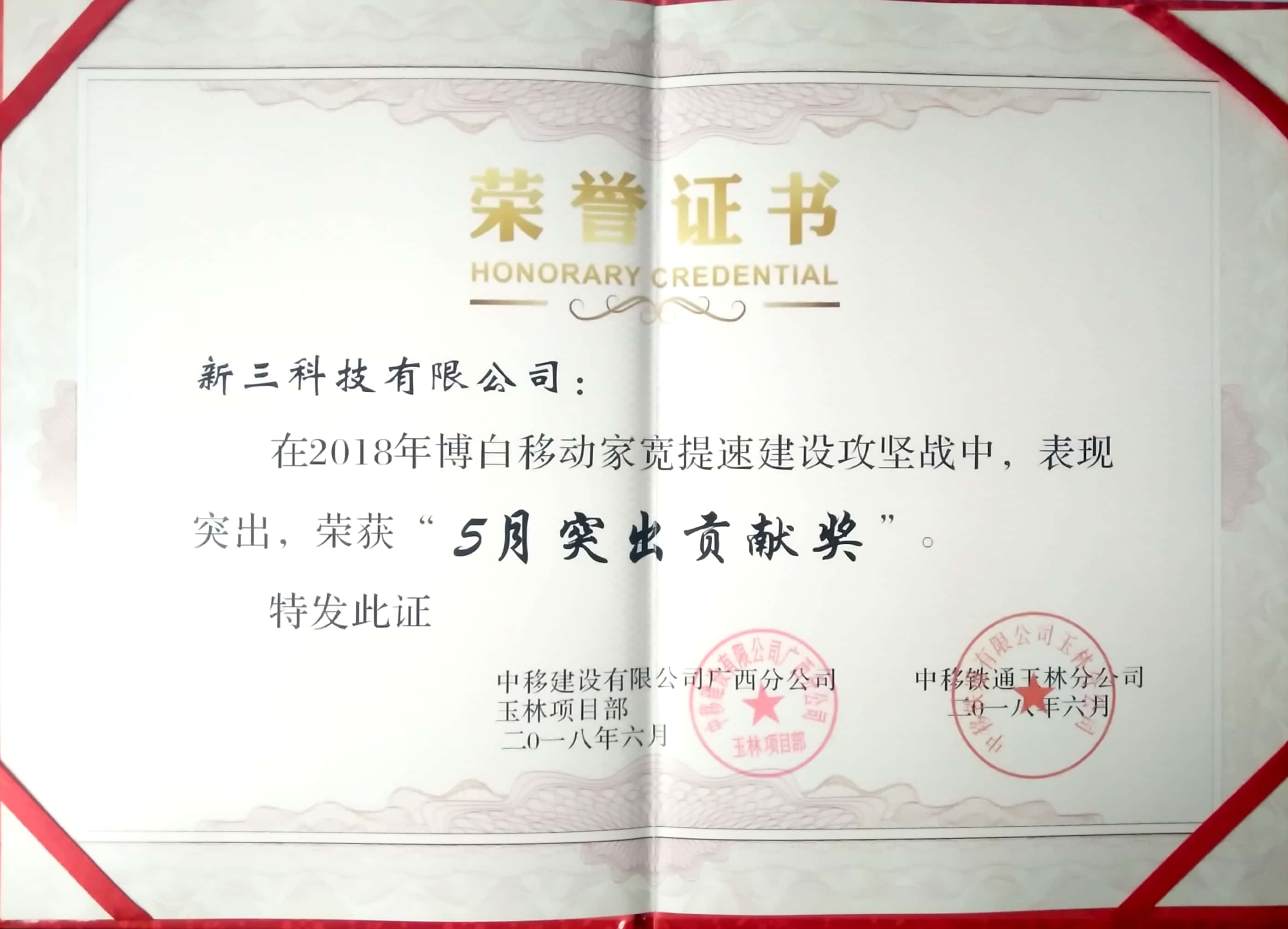 中移铁通移动加宽5月突出贡献奖
