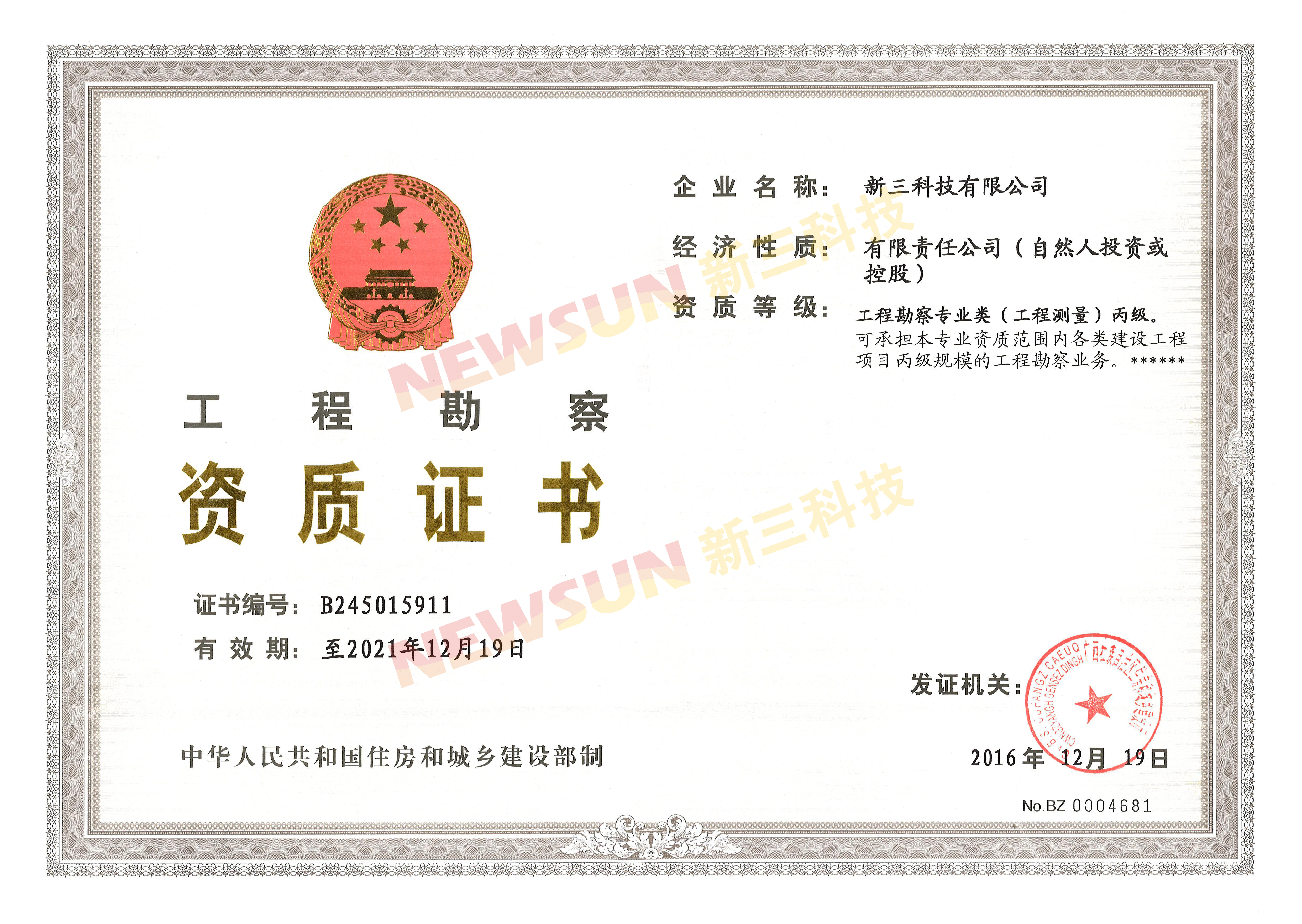 工程勘察专业类(工程测量)丙级资质