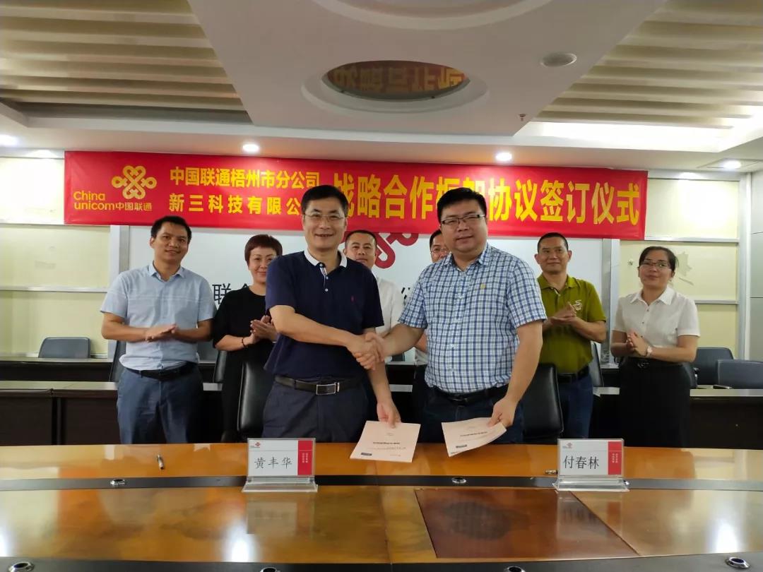 2019年7月11日,新三科技有限公司与中国联通梧州市分公司在中国联通梧州市分公司会议室签订智慧城市战略合作框架协议,双方将在智慧城市信息化建设方面强强联手展开深度合作,携手共创新未来。新三科技有限公司副总经理付春林、中国联通梧州市分公司党委书记、总经理黄丰华等领…