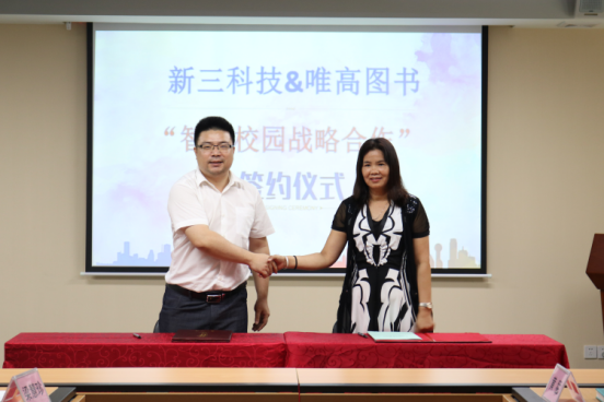 2017年6月16日下午,新三科技有限公司(下称新三科技)与南宁唯高图书批发有限责任公司(下称唯高图书)战略合作协议签约仪式在新三科技总部隆重举行。
