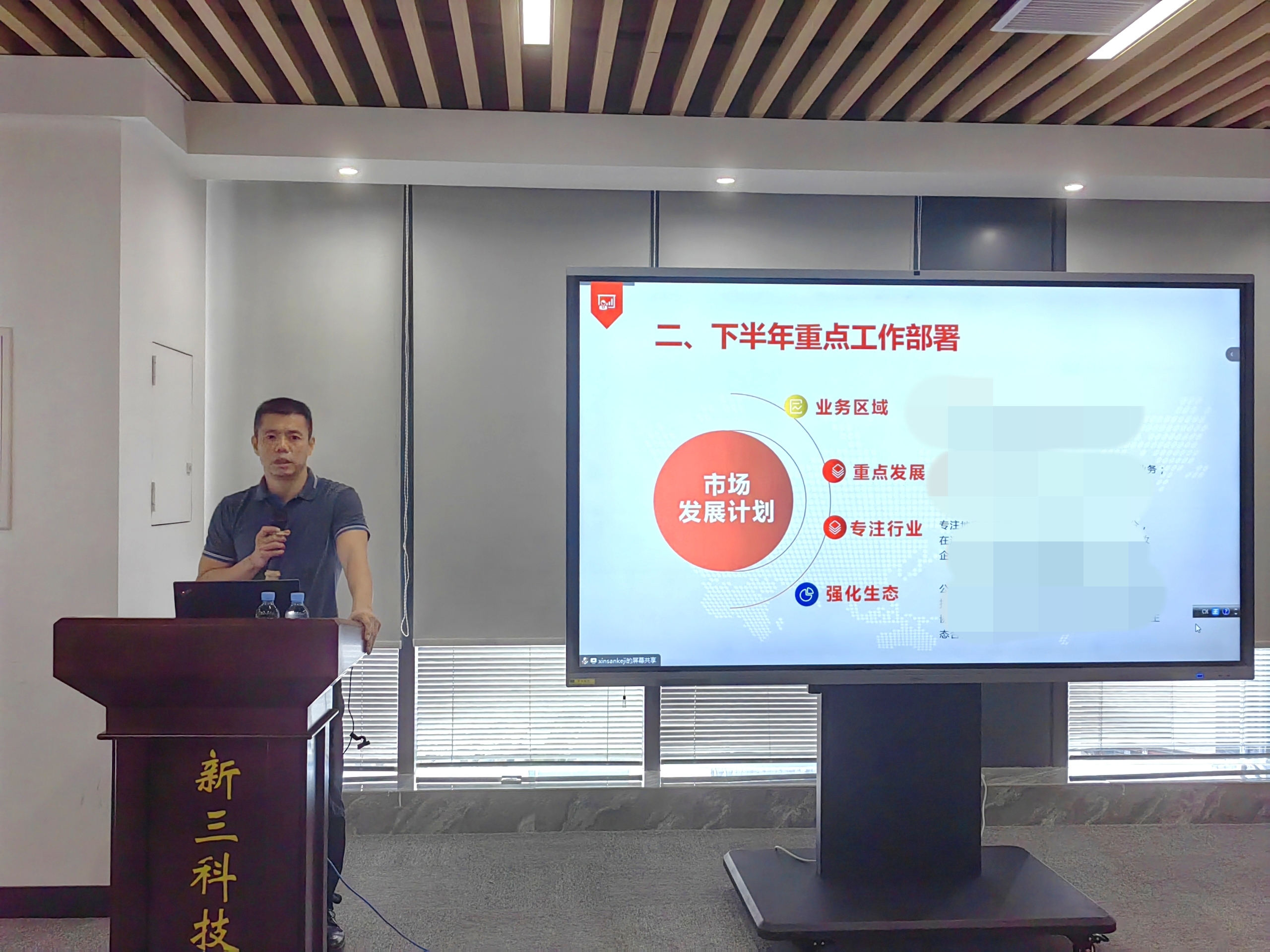 7月10日,新三科技2023年度年中工作会议在五象总部大厦会议室召开,公司领导、业务公司、职能部门管理干部参加会议。本次会议对上半年经营管理工作进行全面总结,分析市场形势,明确下半年发展目标方向。会上,公司总裁何东信围绕公司经营指标完成情况、重点工作亮点、发展过程…