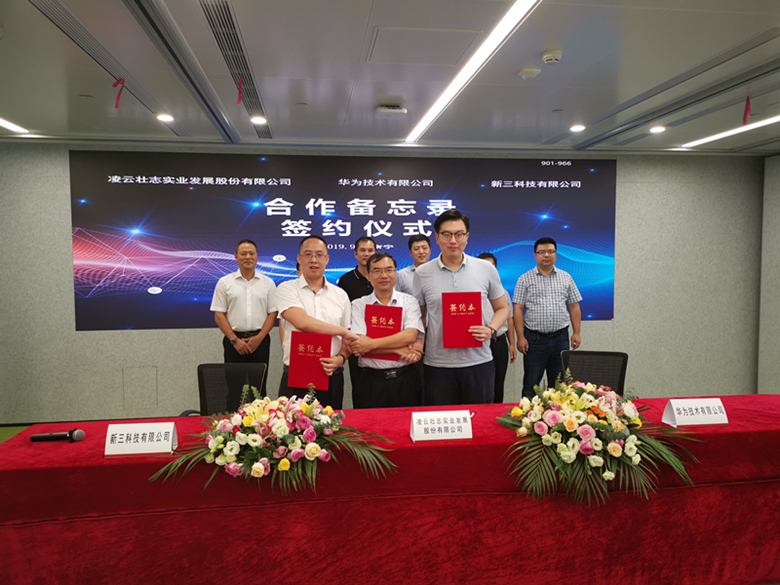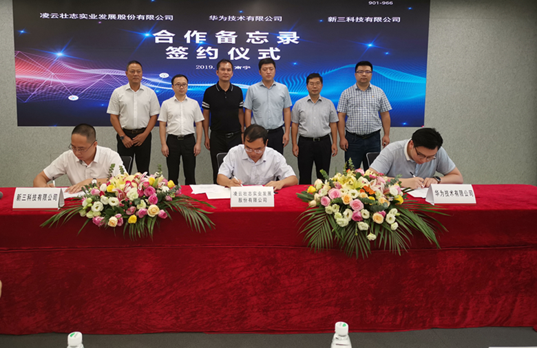 2019年9月1日上午,凌云壮志实业发展股份有限公司、华为技术有限公司和新三科技有限公司在华为公司广西代表处签署三方合作备忘录,正式建立战略合作伙伴关系。三方将在智慧城市、基础设施通讯服务等领域全面开展合作,共同推动“智慧城市”建设发展。