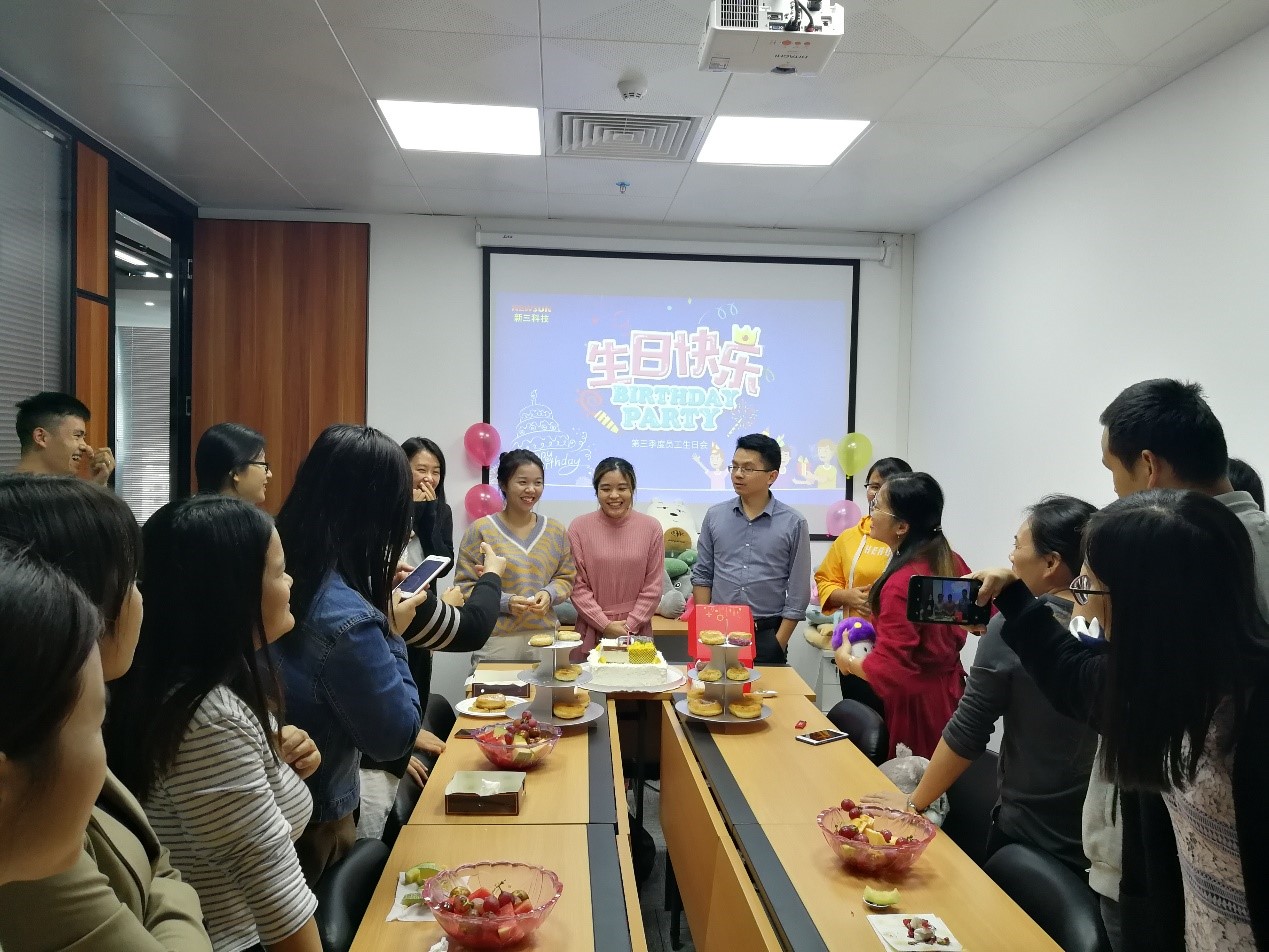 欢声笑语,祝福满满,2019年10月30日,新三科技为三季度生日的员工举办集体生日会,活动安排在公司总部会议室,职能部门全体员工参加了生日会。