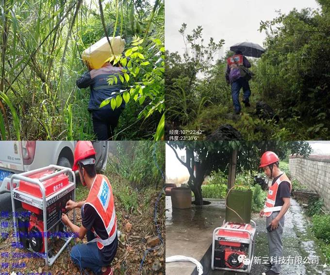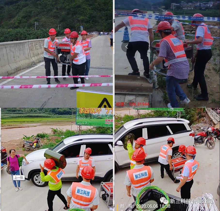 灾情紧急,解决人们的通信难题是我们通信人义不容辞的重任,为了尽快恢复当地通信,新三科技百色分公司迅速启动灾害通信保障应急预案,做好保障物资调拨,并在第一时间成立应急支援小组,迅速投入汛期抢修战斗。由于道路水毁严重,抢修人员肩扛通讯器材,步行至救灾现场 “车进不去,咱就走,发电燃油不能运,咱就扛!”,面对困难重重一线维护人员总想出各种办法解决,只为抢通基站。