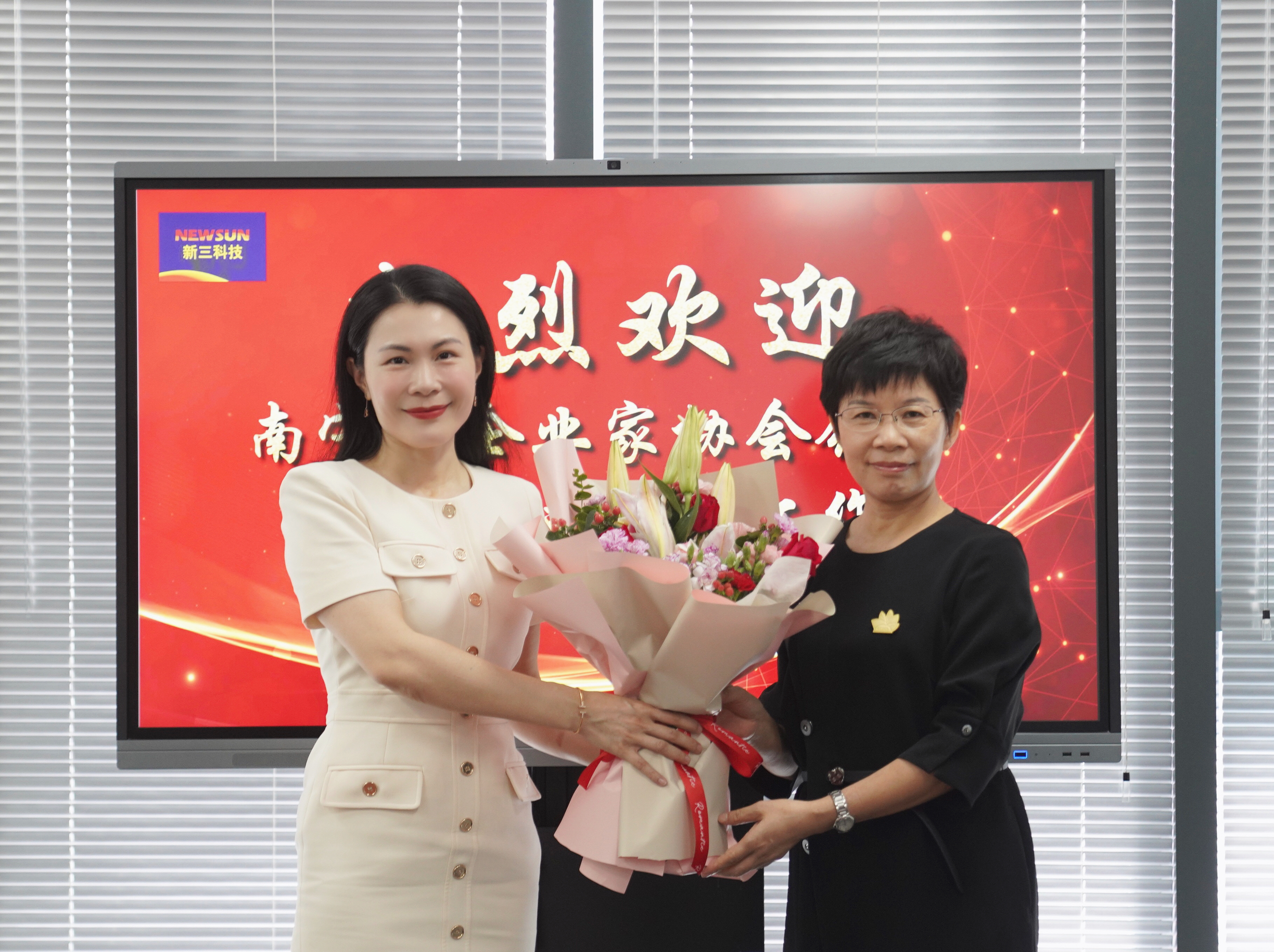 2022年7月27日,南宁女企业家协会(以下简称“南宁女企协”)常务副会长、本月值班会长组长谢宛颖一行莅临新三科技有限公司(以下简称“新三科技”)调研指导工作。新三科技董事长、总裁谢真珍女士向南宁女企协常务副会长谢宛颖一行人的到来表示热烈的欢迎。