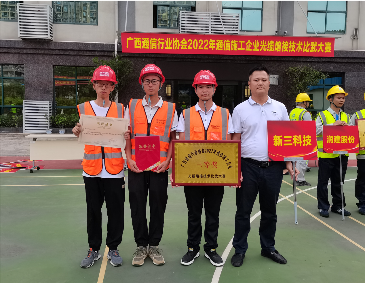2022年9月21日,由广西通信行业协会主办的2022 年通信施工企业光缆熔接技术比武大赛在南宁举办。经过14家通信施工企业间的激烈追逐,新三科技荣获本次技术比武大赛三等奖!