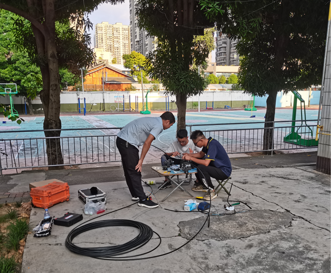 收到广西通信行业协会比武邀请后,公司高度重视,第一时间制定技能比武方案,从各分公司召集优秀人才,并选拔贺州分公司叶兰千、桂林分公司李垚莛、百色分公司麻文权三位选手参赛。三天的赛前集训期间,小队成员认真研究比赛内容、仔细研磨评分规则,增强默契度,进入高度紧张的备赛状态。