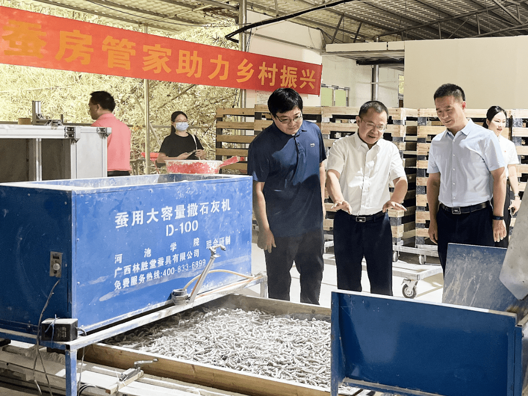 9月23日,自治区大数据发展局党组成员,自治区信息中心党委书记、主任周飞一行赴河池市调研数字化转型发展工作,河池市委常委、副市长周元龙陪同调研。调研组到智慧蚕房管家系统项目进行实地考察,对项目给予充分肯定,并指出要加快数字经济与实体经济融合发展,加快推动数字经济发展以及数字化全面转型发展。