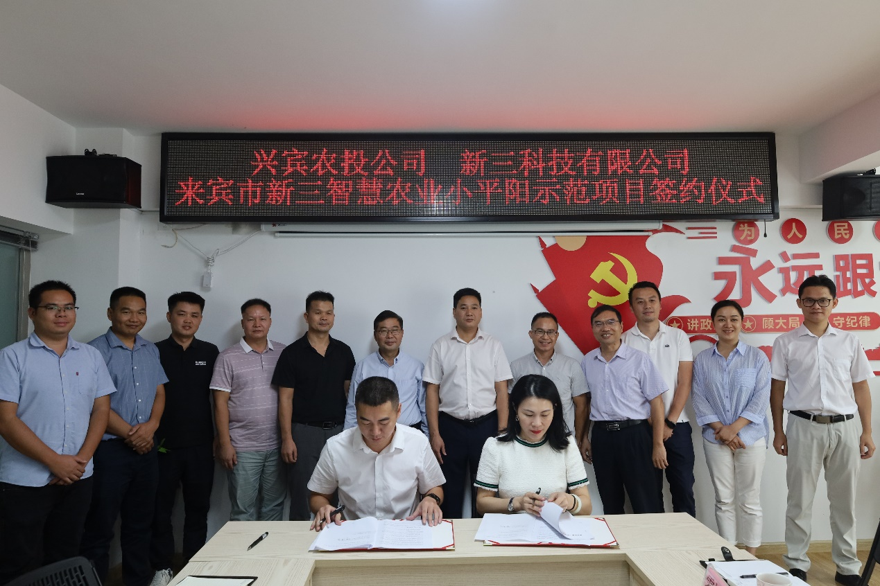 (六)9月23日,新三科技与兴宾农投举行来宾市新三智慧农业小平阳示范项目签约仪式。