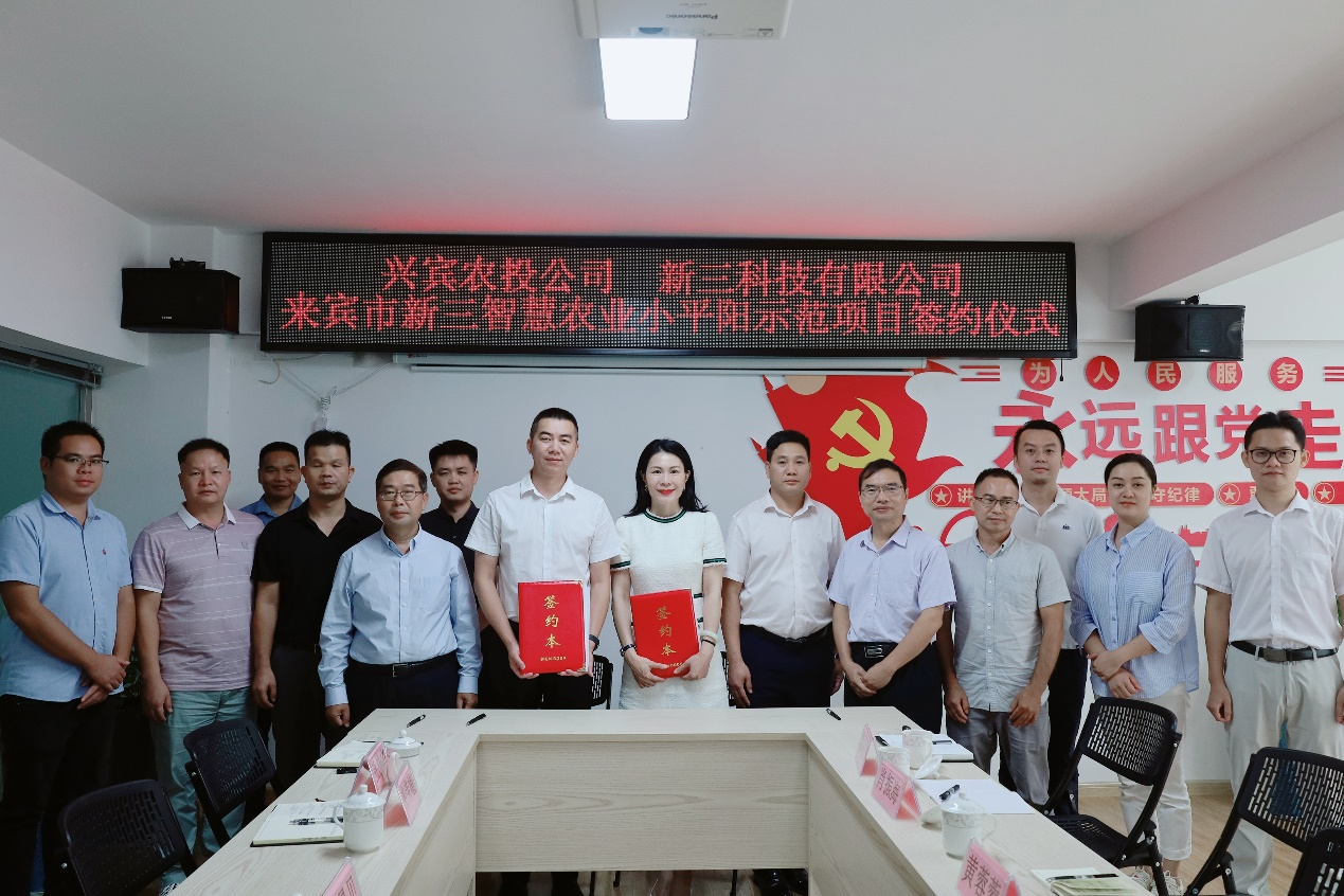 2023年2月16日,兴宾农投公司、新三农业科技有限公司、广西移动巡察党廉办、来宾移动公司四方党建结对共建签约仪式在来宾市新三智慧农业小平阳示范基地成功举行,共同签署了《党建结对共建协议书》。
