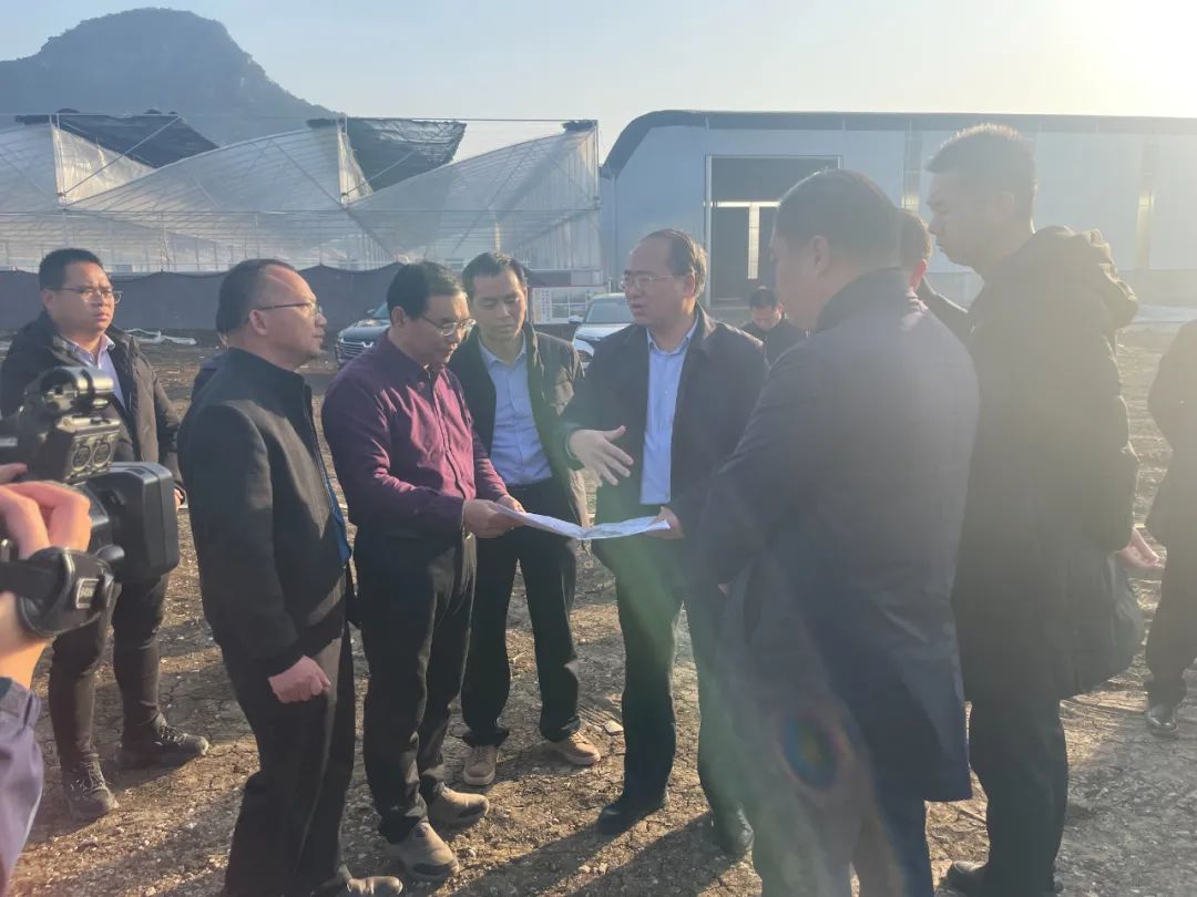 2023年2月13日,来宾市市委书记何朝建率队到我司新三智慧农业小平阳产业示范基地开展工作调研。