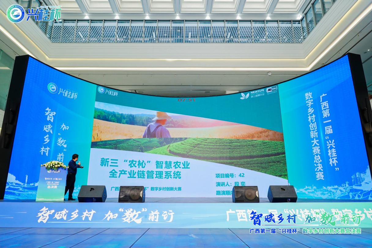 在10月20日举行的广西第一届“兴桂杯”数字乡村创新大赛颁奖典礼上,新三科技有限公司携手广西来宾兴宾农业开发投资集团有限公司及来宾新三农业科技有限公司联合申报的新三“农杺”智慧农业全产业链管理系统项目,以其在数字乡村建设中的卓越表现,荣获大赛典型案例奖。