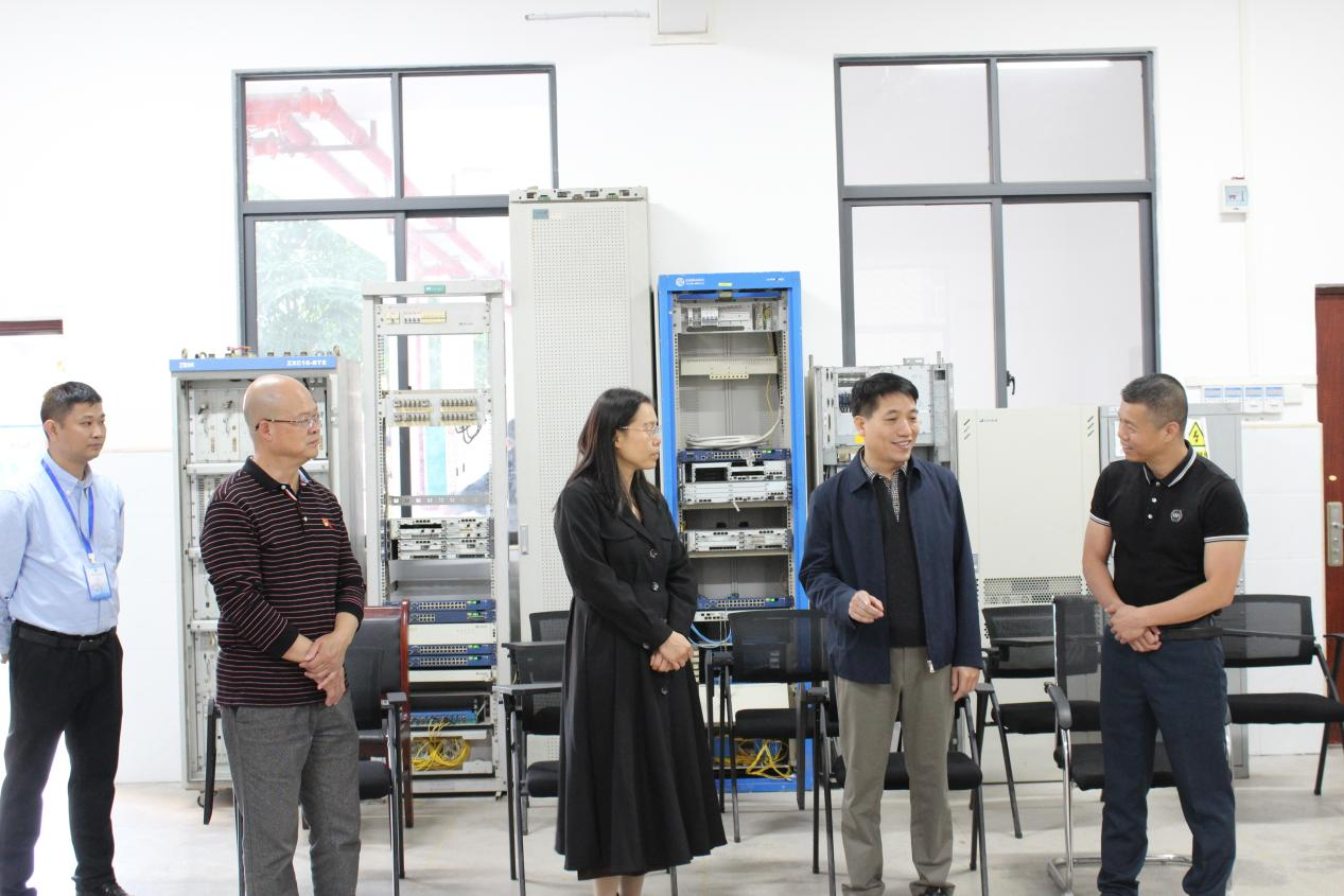 交流会后,调研组一行前往数字智能职校参观退役军人职业技能培训项目实训基地。学校党支部书记王勇才进行现场讲解,汇报了2023年退役军人参与信息通信网络线务员职业技能培训及岗前强训情况。