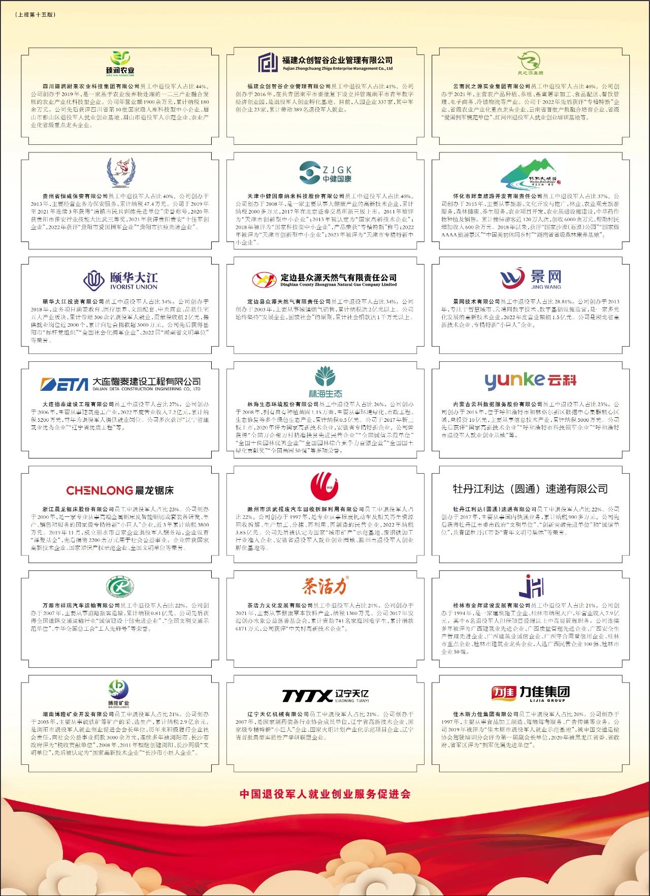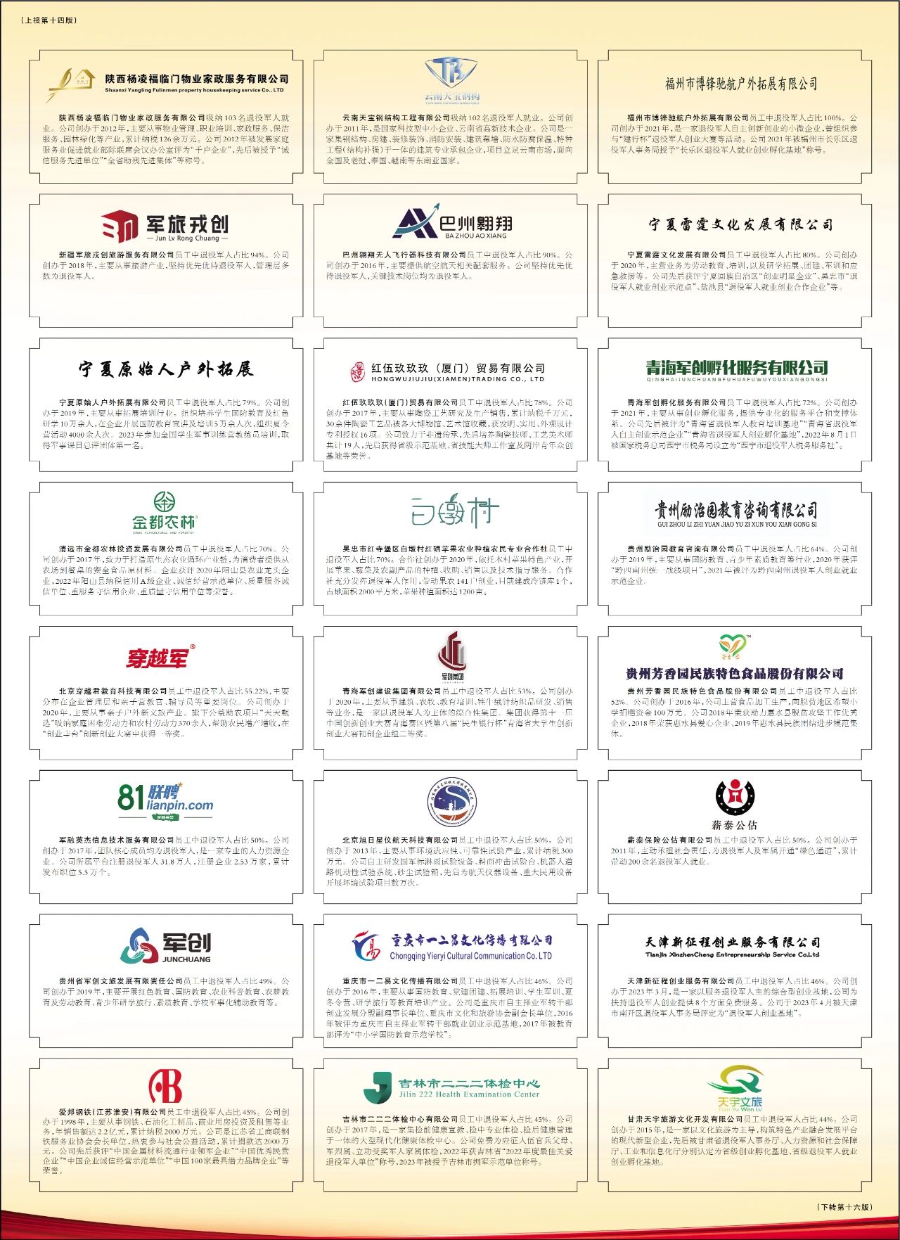 12月29日,“2023年度全国退役军人创业带动就业光荣榜”在《人民日报》刊登,全国90家退役军人创办企业上榜。具体内容如下: