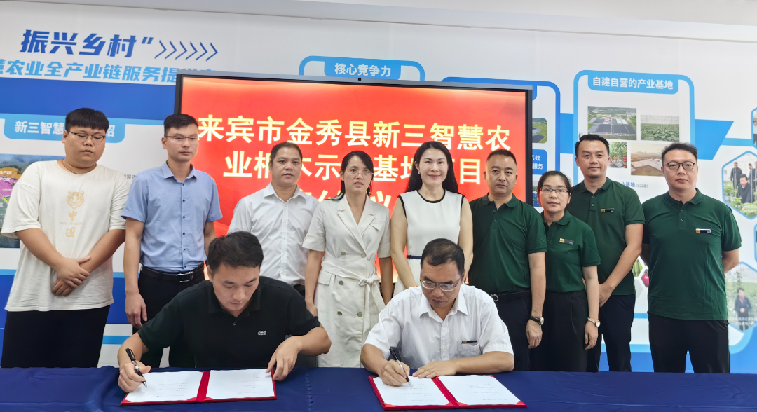 9月,新三科技有限公司与来宾市金秀县人民政府签订新三智慧农业桐木示范基地项目合作协议。