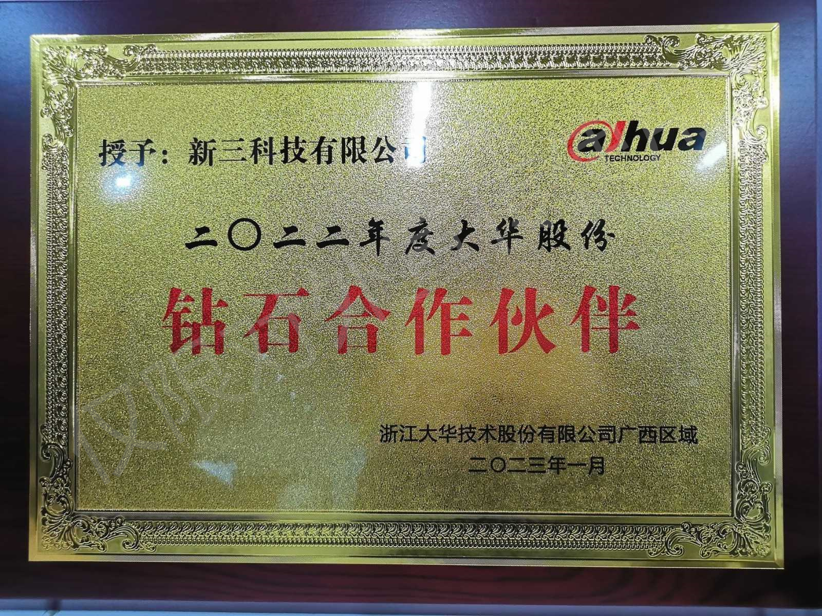 1月,大华授予2022年度大华股份钻石合作伙伴。