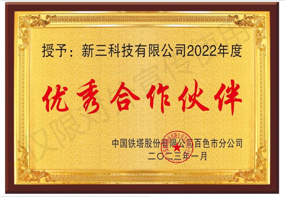 1月,中国铁塔股份有限公司百色市分公司授予2022年度优秀合作伙伴。