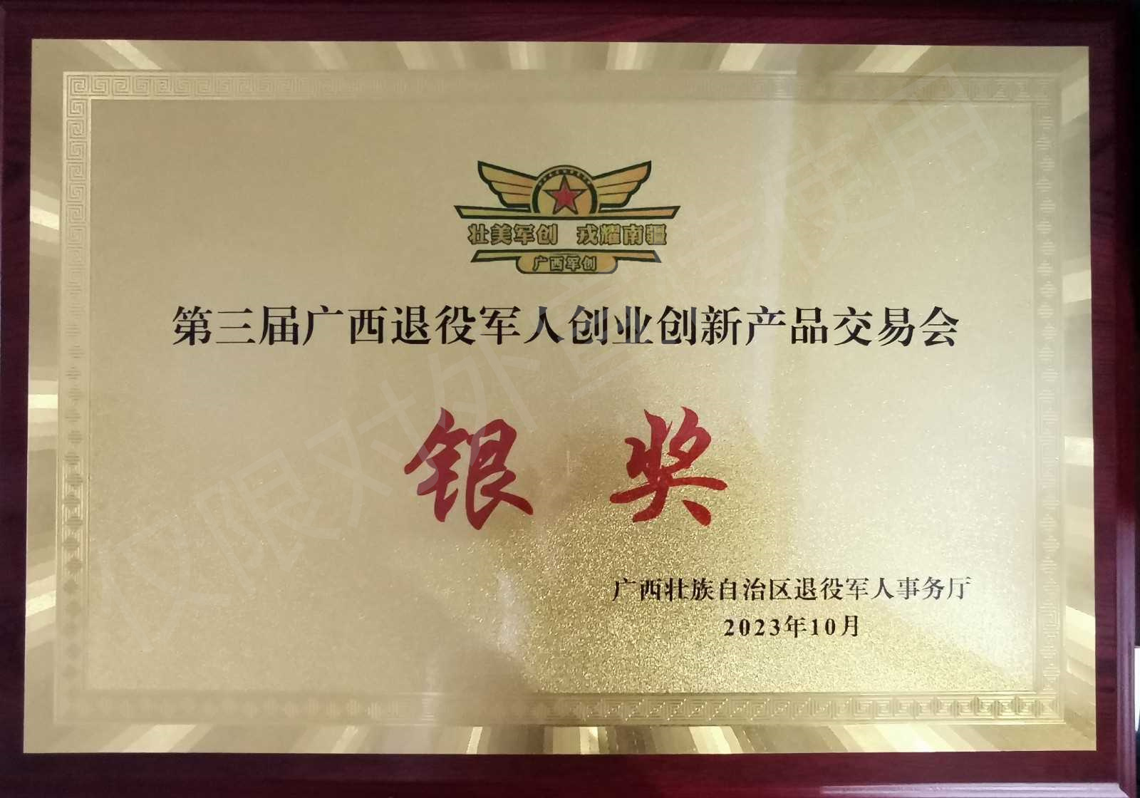 10月,获第三届广西退役军人创业创新产品交易会银奖、南宁市第三届退役军人创业创新产品交易会金奖。