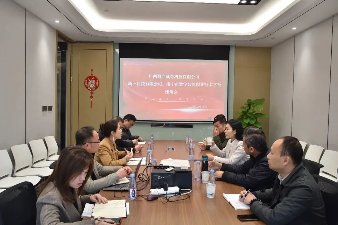 2月,新三科技有限公司、南宁市数字智能中等职业技术学校到数广威奇公司开展座谈交流会。