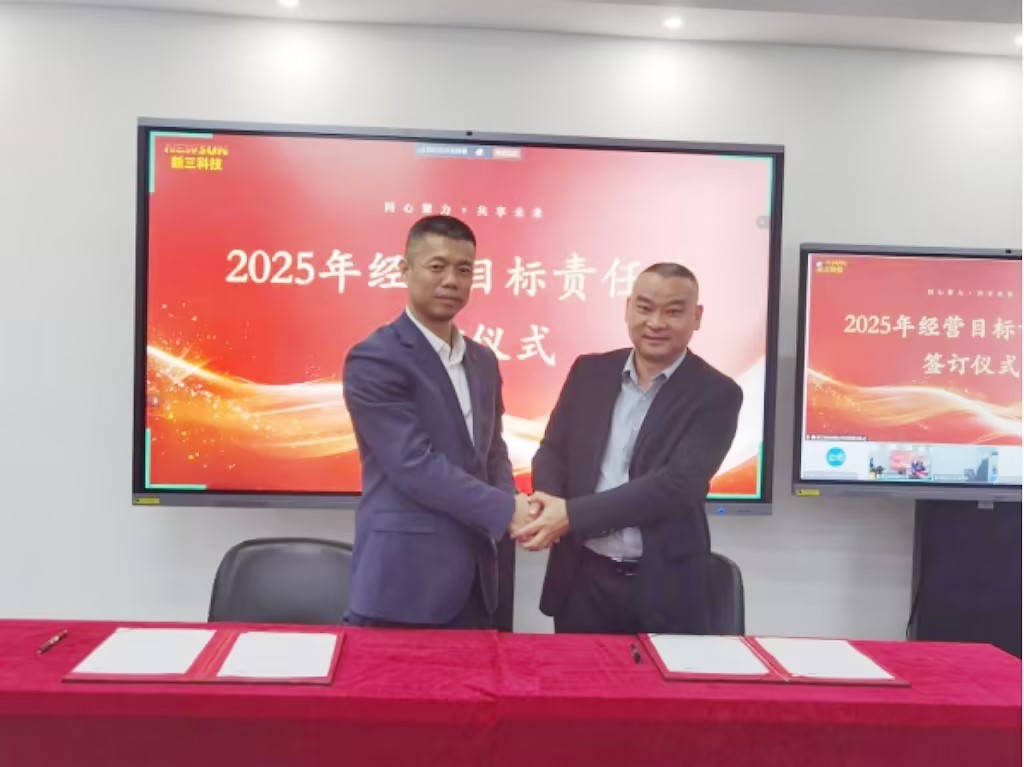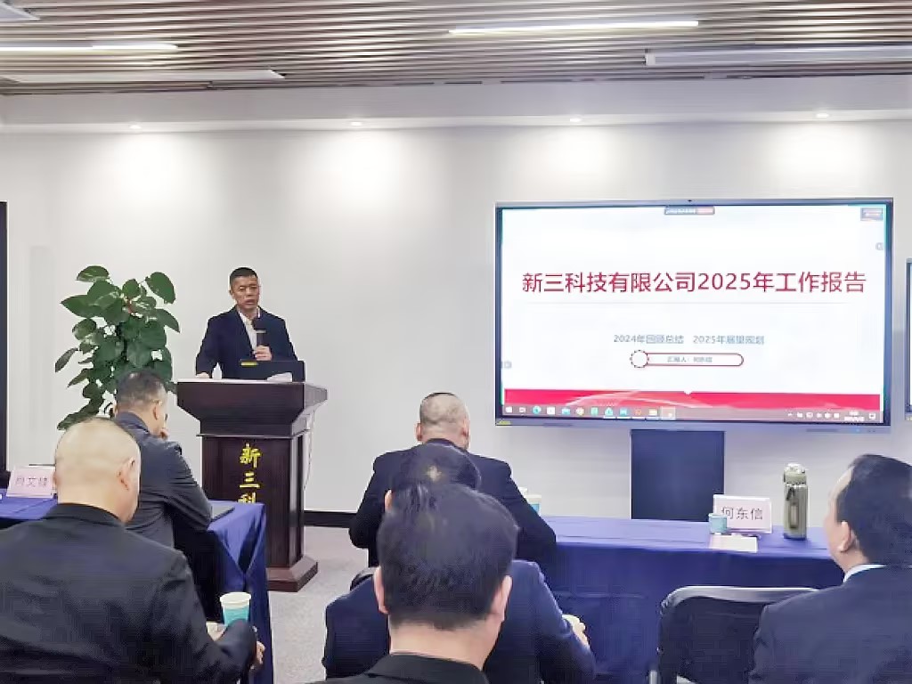 2025年1月12日,新三科技以“同心聚力,共享未来”为主题的2025年度工作会议暨2024年度表彰大会圆满召开。本次大会采用“线上+线下”联动的方式,公司领导、公司中层以上管理人员及南宁市数字智能中等职业技术学校领导、获奖代表线下参会,其他人员在各驻地集中线上参会,全国24个省份一线员工齐聚,共同回顾过去一年的奋斗历程,展望充满希望的新一年。