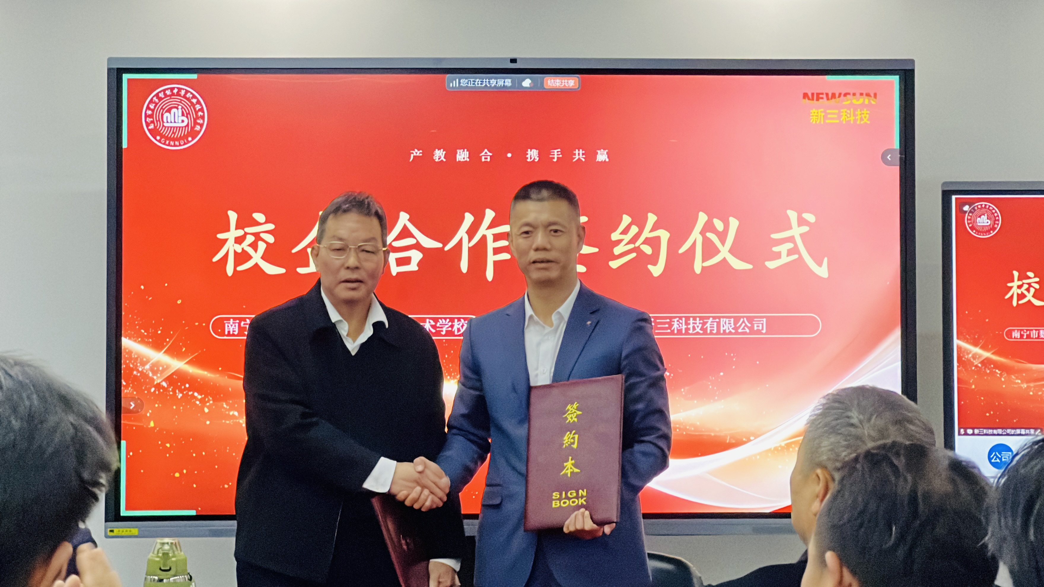 为充分发挥学校和企业的优势,在人才培养、技术创新、就业创业、社会服务等方面开展深度合作,积极探索双方合作模式。公司与南宁市数字智能中等职业技术学校举行了校企合作签约仪式。