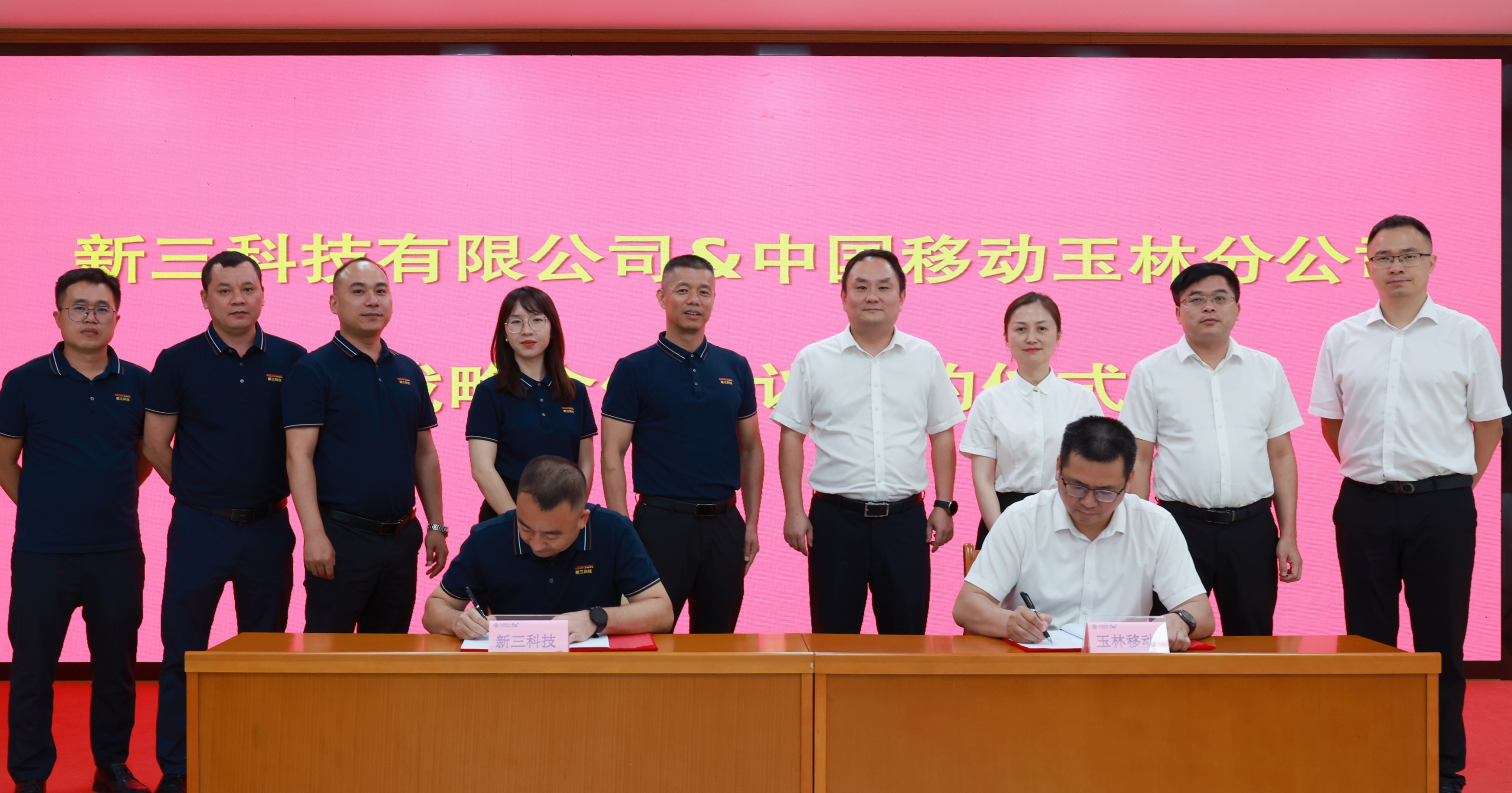 7月8日,新三科技有限公司(以下简称“新三科技”)与中国移动广西公司玉林分公司(以下简称“玉林移动”)举办政企业务交流暨战略合作协议签约仪式。玉林移动党委书记、总经理张京,新三科技总裁何东信出席座谈,双方就重点项目落地以及其他政企领域合作项目进行深入探讨交流,推动政企合作向更广阔领域迈进。