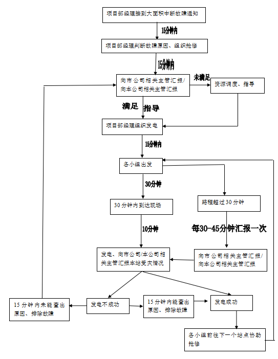 为了保障汛期移动网络通信质量,更好地贯彻落实通信保障工作的要求并切实做好汛期的通信保障工作,新三崇左分公司响应中国联通崇左分公司运行维护部要求,于2017年5月19日下午在扶绥项目部举行一场应急演练。应急演练流程图如下: