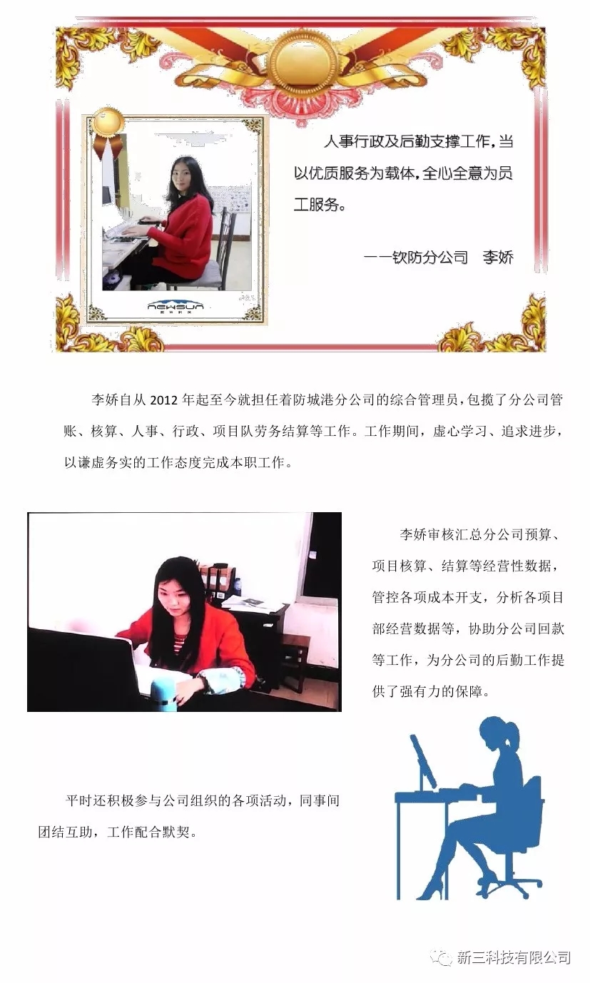 2017年优秀工作者——钦防分公司 李娇