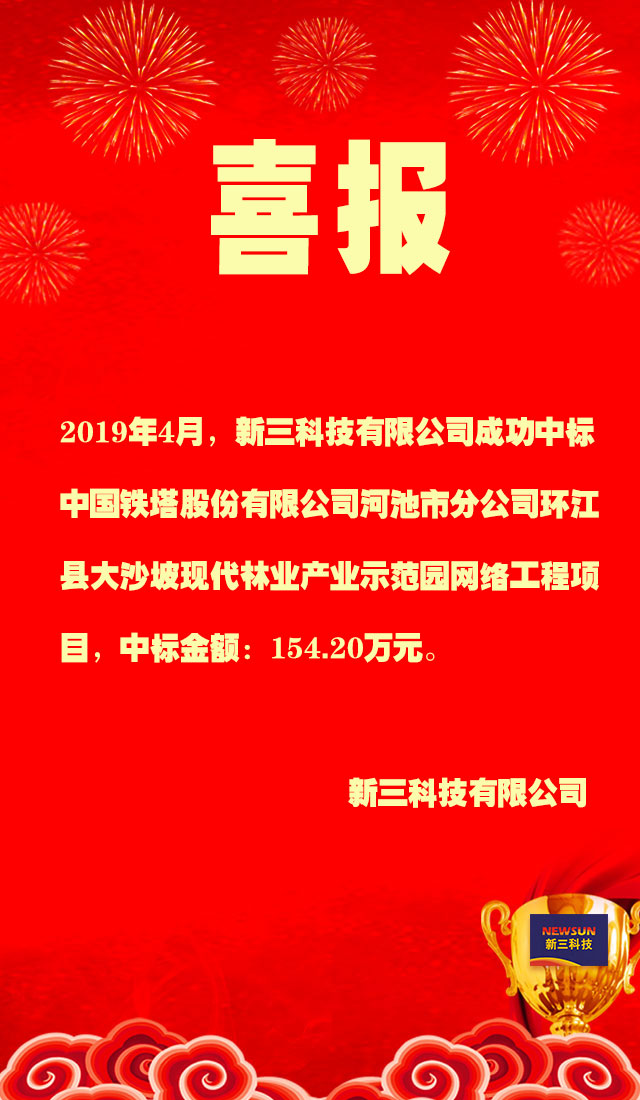 新三科技中标中国铁塔河池分公司环江县大沙坡现代林业产业示范园网络工程项目