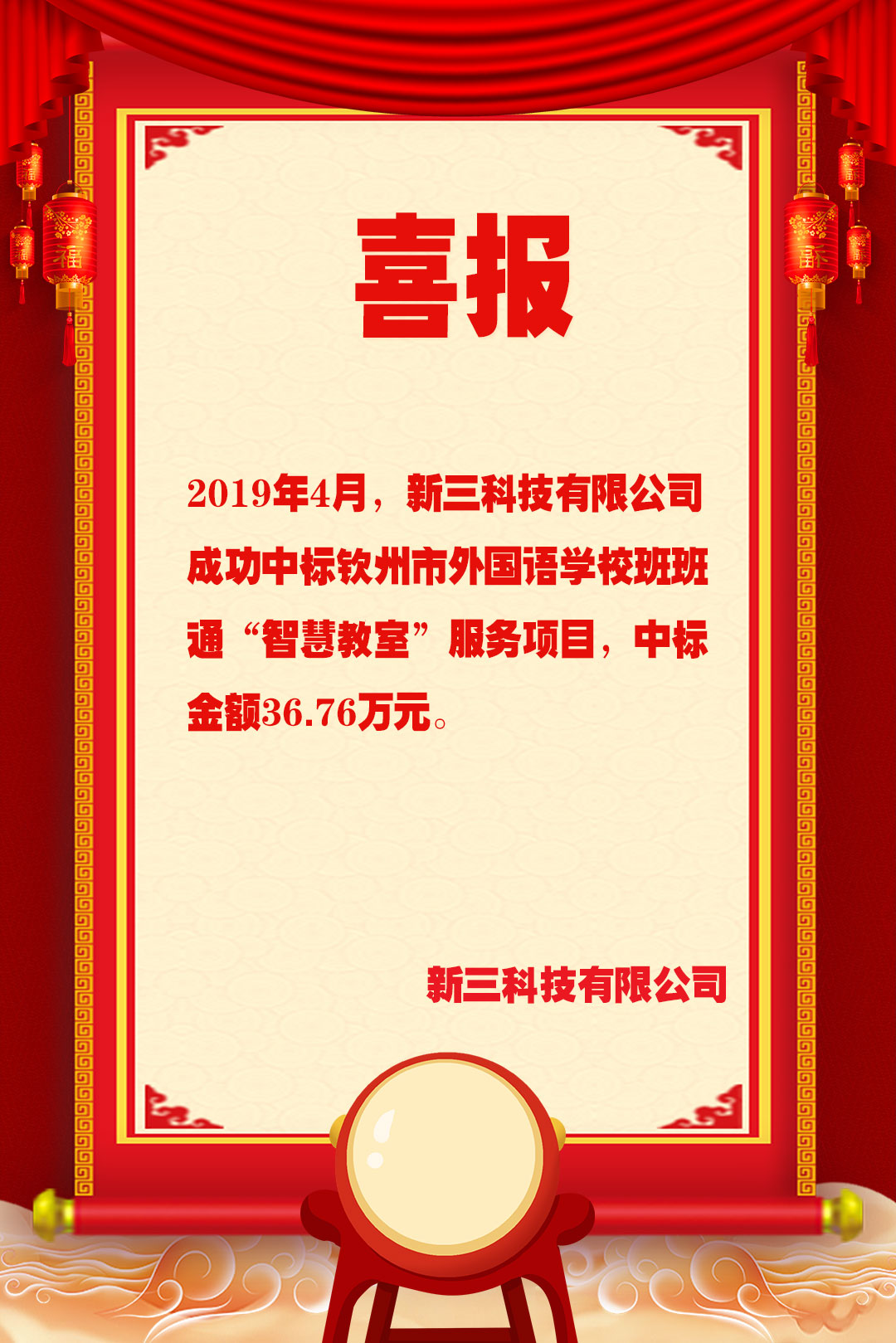 新三科技中标钦州市外国语学校班班通“智慧教室”服务项目