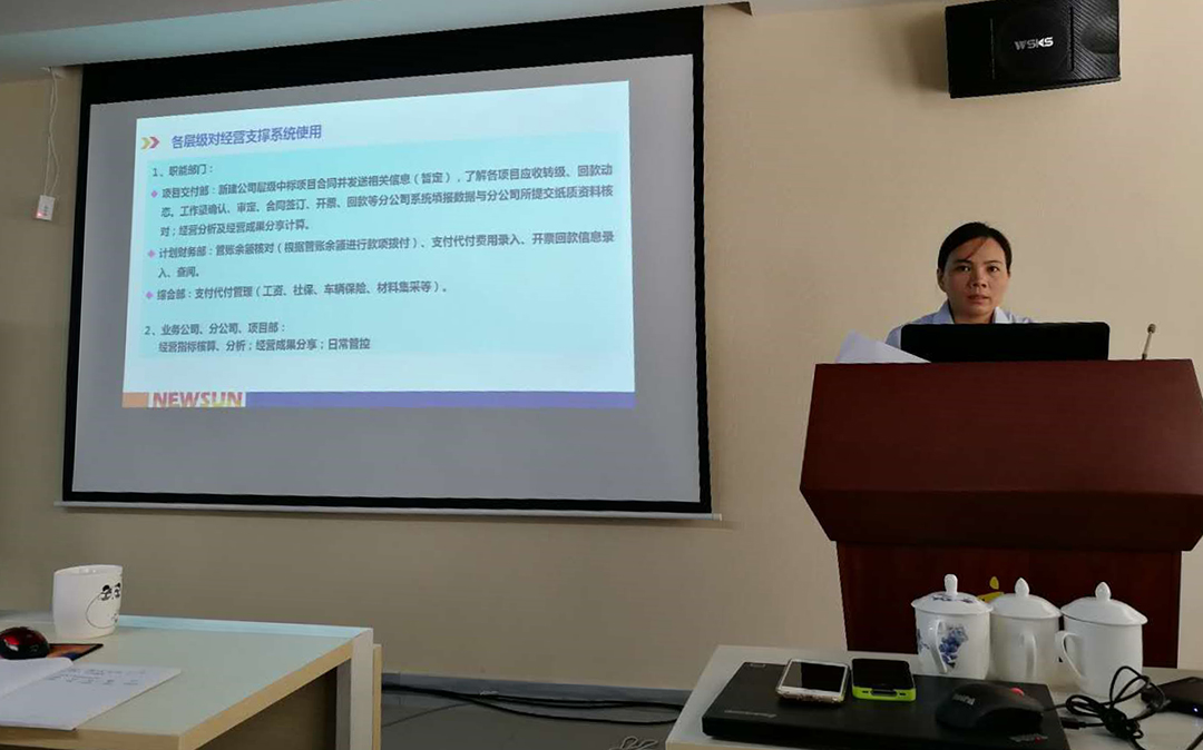 2019年5月21日,为了提高新三科技有限公司各业务公司、分公司、部门的经营核算水平,以及顺利推动公司经营支撑系统上线,项目交付部组织各业务公司、分公司、部门的核算员、回款专员等共40人在智科公司驻地会议室开展项目核算工作及经营支撑系统运用的培训。