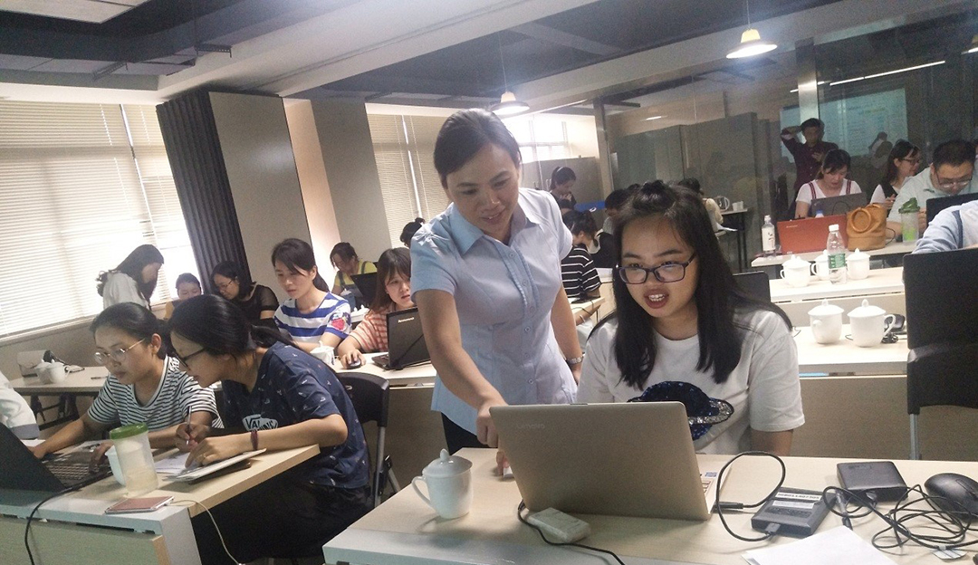 (图为项目交付部黄萍进行经营支撑系统使用培训)